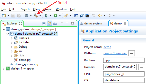 Prevajanje knjižnic in aplikacijskih datotek izvedemo s klikom na Build v orodni vrstici.